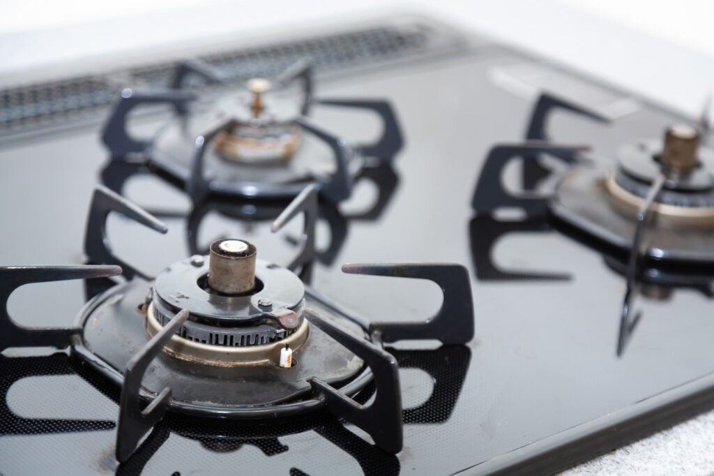 ・煙が非ステンレス金属の表面を浸食するので、真鍮やメッキのものはマスキングしておく
