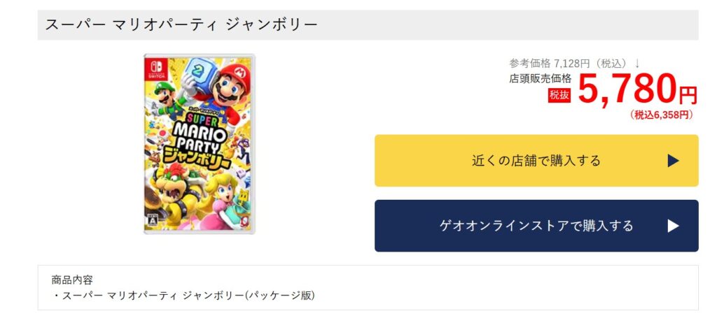 ゲームソフトの買い取り・販売を行うGEOでの販売価格は、2024年10月現在6,358円税込みでした。