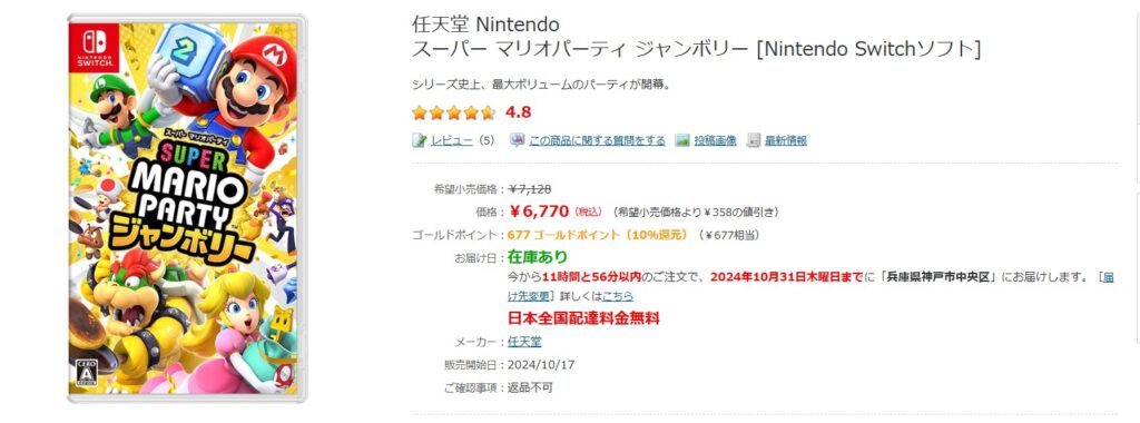 任天堂から2024年10月17日に「スーパー マリオパーティ ジャンボリー」が発売されました。