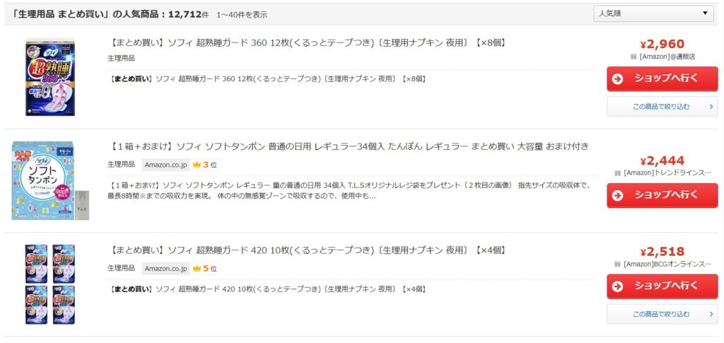 更に、ネット通販を使えば、人目を気にせず自宅に届くし、セール期間を狙えばさらにコスパ良く購入できますよ。